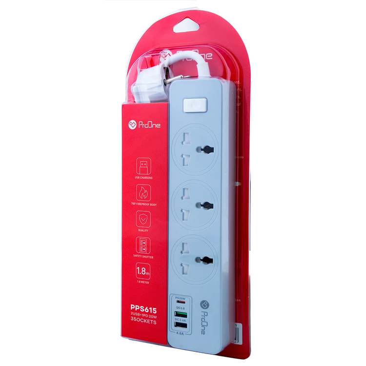یکی از کالاهای مورد نیاز در تمامی منازل و ادارات چند راهی برق می باشد. چند راهی PPS615 که یکی از محصولات جدید شرکت «Proone» است در ابعادی معادل طول 249 و عرض 54 و ارتفاغ 33 میلی متر طراحی و تولید شده است. جنس بدنه این کالا از پلیمر کربن ضدحریق می باشد که در برابر شعله ور شدن هنگام نوسانات شدید برق و یا داغ شدن بیش از اندازه مقاوم است. چند راهی PPS615 دارای 3 محفظه جهت اتصال با جریان متناوب AC و 2 پورت USB و یک پورت Type-c است، یکی از ویژگی های مهم این چند راهی داشتن قفل کودک است که با یک دکمه خاموش و روشن میشود. چند راهی PPS615 دارای محفظه اتصال دوشاخه و سه شاخه است. شدت جریان خروجی این محفظه ها برابر 10 آمپر و ولتاژ خروجی هر کدام معادل 250 ولت است. 2 پورت USB در این چند راهی تعبیه شده که 1 پورت از آن Normal USB بوده و یک پورت از فناوری شارژ سریع QC3.0 پشتیبانی می کند و پورت Type-c تا 20w شارژ میکند. چند راهی برق PPS615 پرووان کالایی با قابلیت های متنوع است که نه تنها برای انقال جریان برق متناوب، بلکه برای شارژ دستگاه ها و گجت های هوشمند هم کاربرد دارد. این کالا با دارا بودن استانداردهای معتبر جهانی، جهت استفاده در هر محیطی مناسب است.