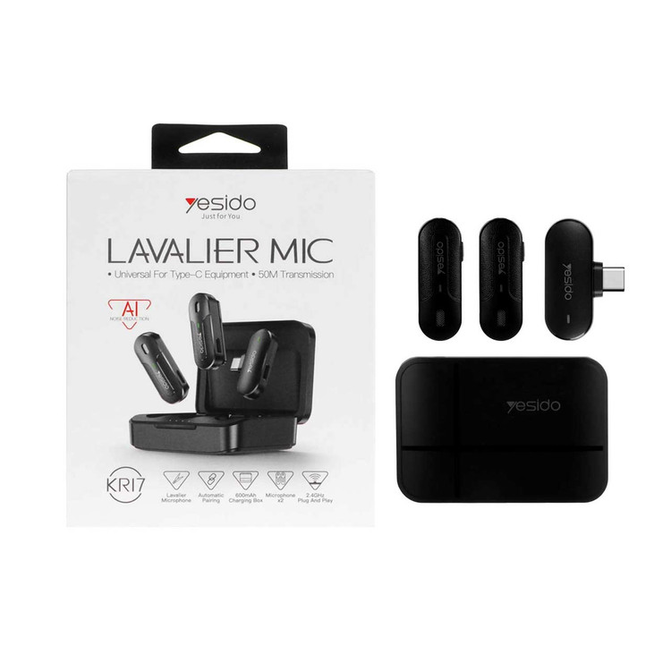 میکروفون یقه ای بی سیم Yesido Type-C مدل KR17 (دو میکرفون)