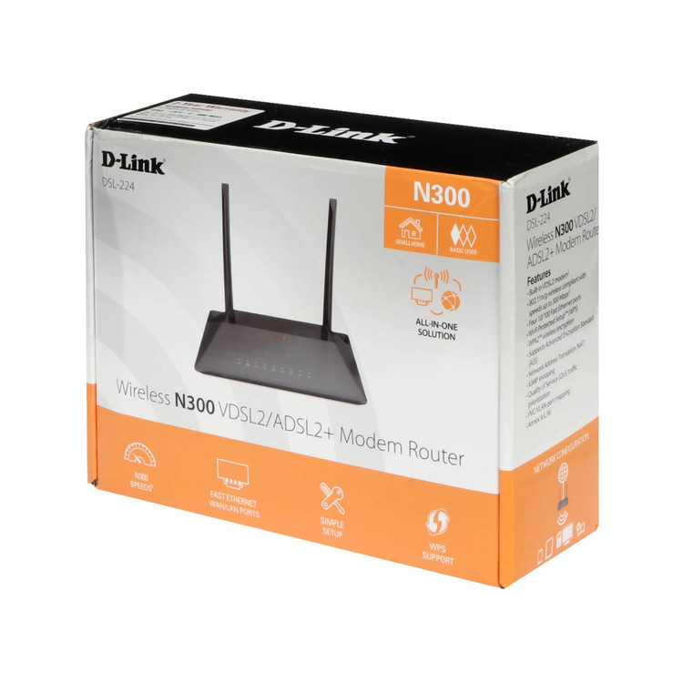 مودم D-link DSL-224 Wireless N300 VDSL2/ ADSl2 + Modem Router - مشکی