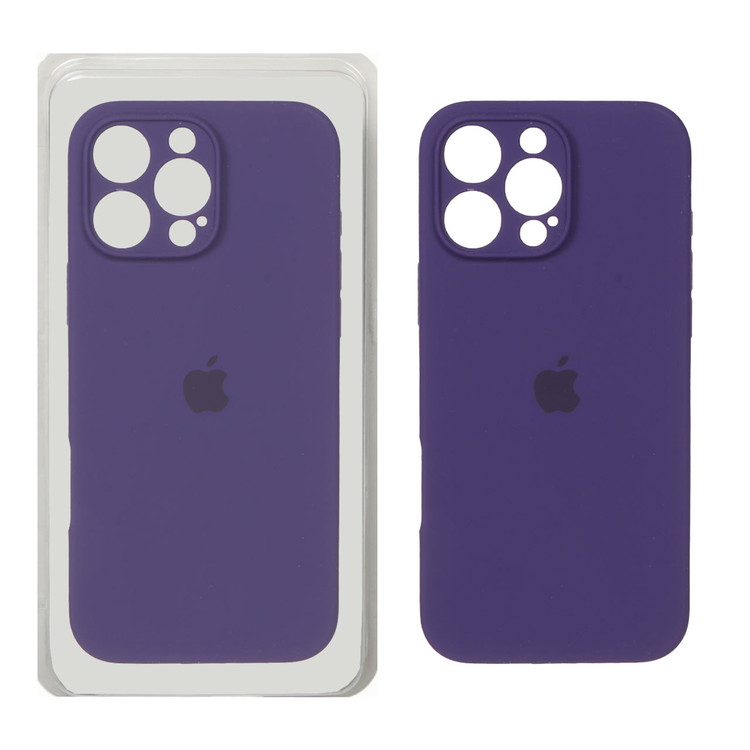 قاب سیلیکونی پاک کنی محافظ لنزدار اورجینال Apple iPhone 16 Pro Max - بنفش تیره (پک اصلی)