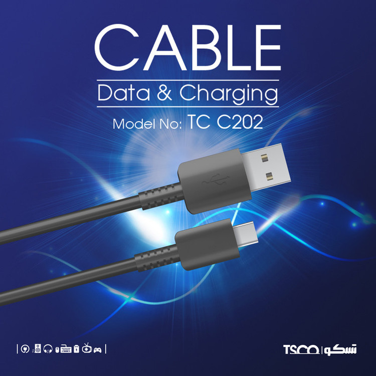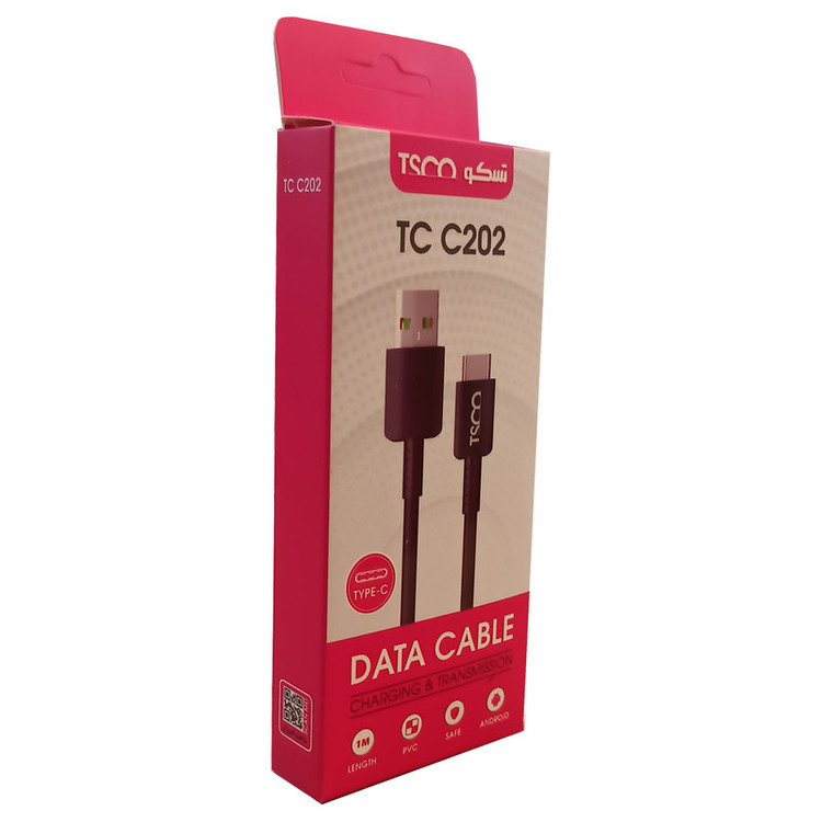 کابل TC C202 برند تسکو 1 متر طول دارد و رشتههای مسی آن با استفاده از PVC پوشانده شدهاند. این روکش مقاومت زیادی دارد و رشتههای مسی داخل کابل را در برابر قطعشدن براثر کشیدن ، خم شدن و گره خوردن مقاوم کرده است؛ کانکتورهای به کاررفته در این کابل TC C202 بسیار مقاوم هستند. در یک سمت این کابل یک کانکتور Type C و در سمت دیگر آن یک کانکتور USB برای اتصال به شارژر و کامپیوتر برای انتقال اطلاعات وجود دارد. شما میتوانید از کابل TC C202 برای شارژ و انتقال اطلاعات میان دستگاههای مختلف به راحتی استفاده کنید.