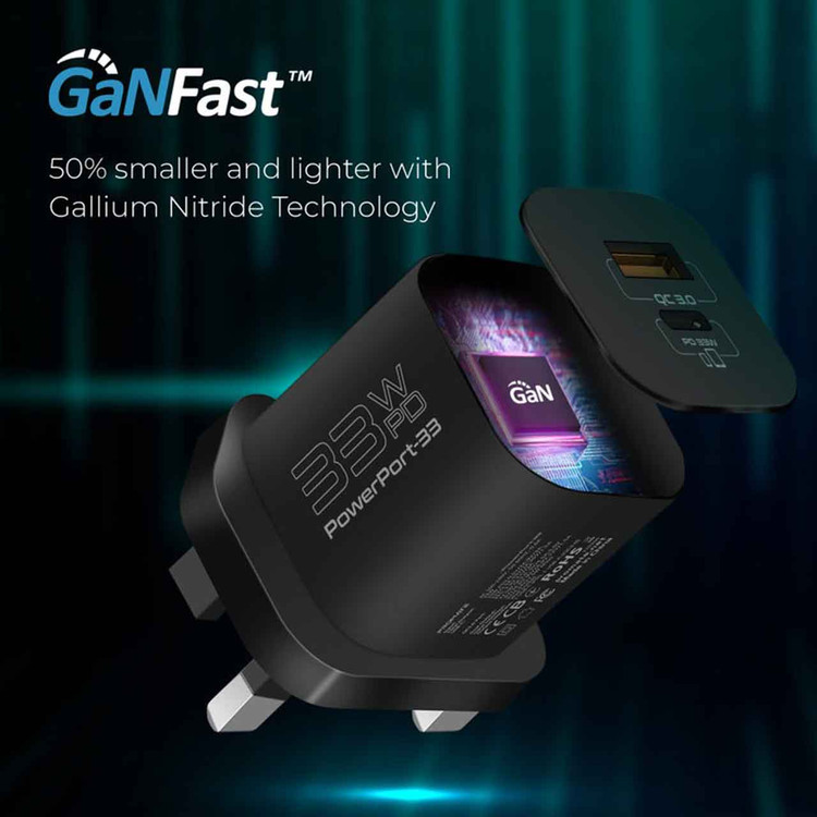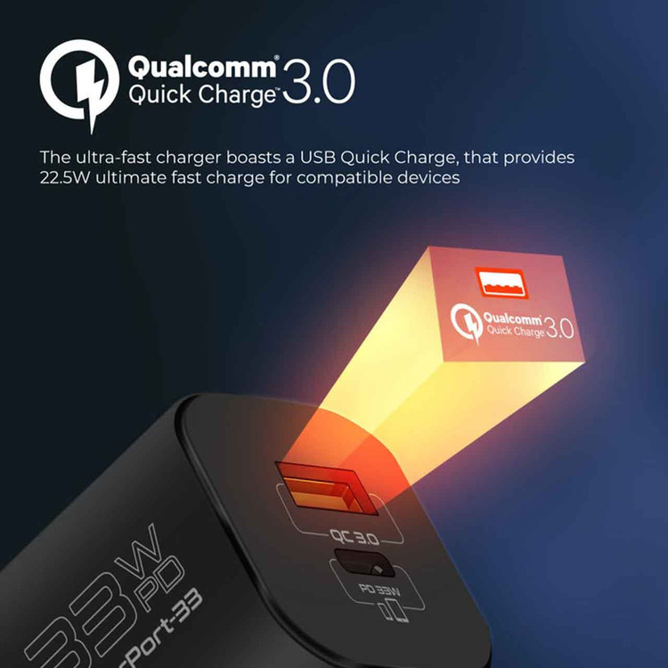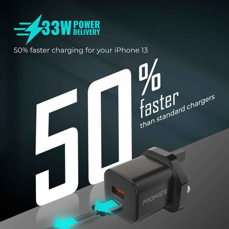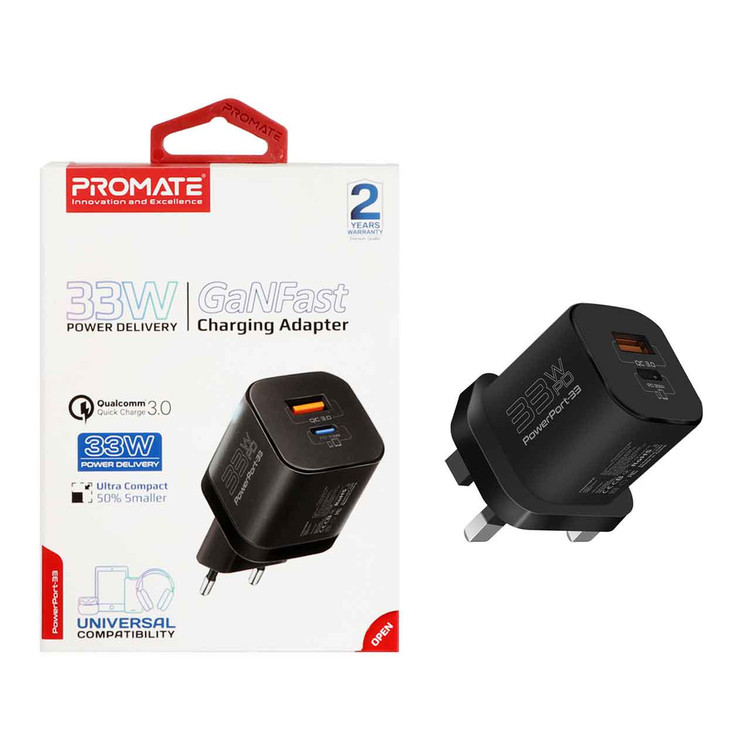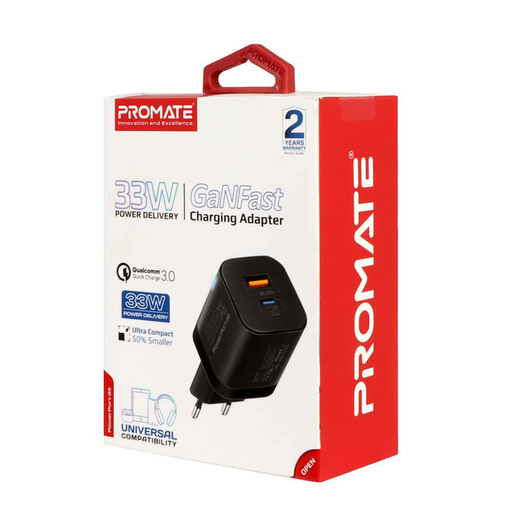 شارژر دیواری فست و PD دو پورت Promate مدل PowerPort-33.EU 33W - مشکی