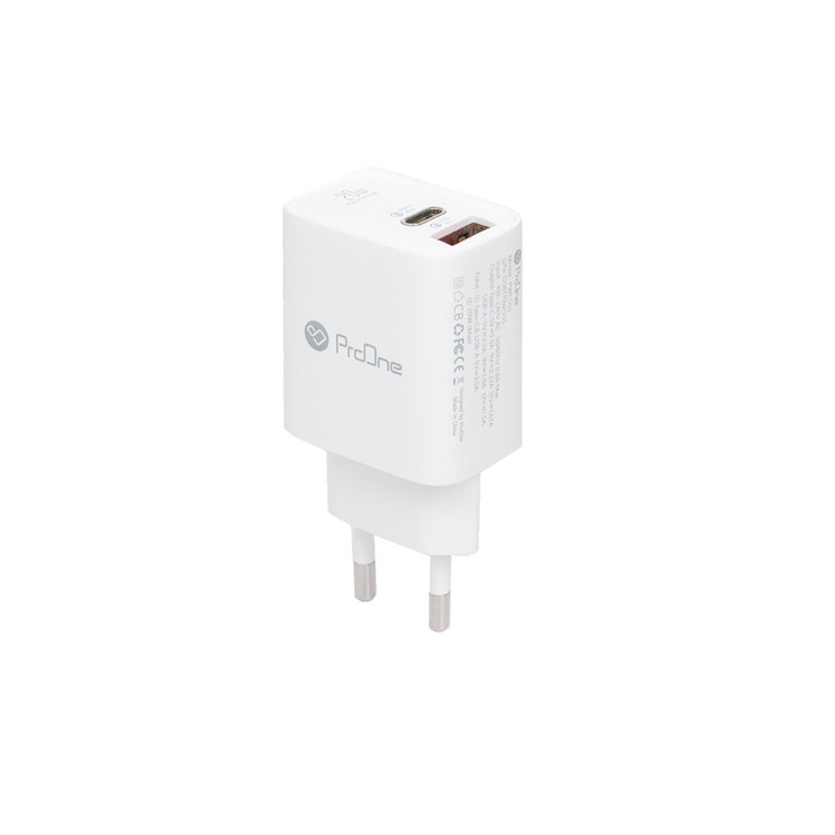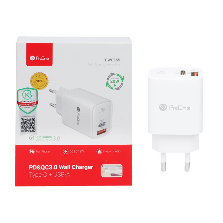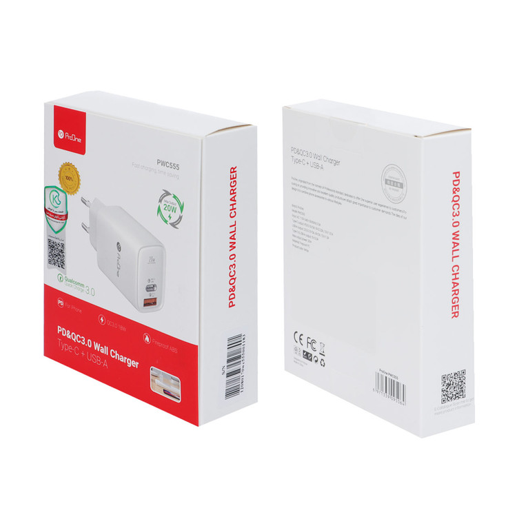 شارژر دیواری 20W فست و PD دو پورت ProOne مدل PWC555 - سفید