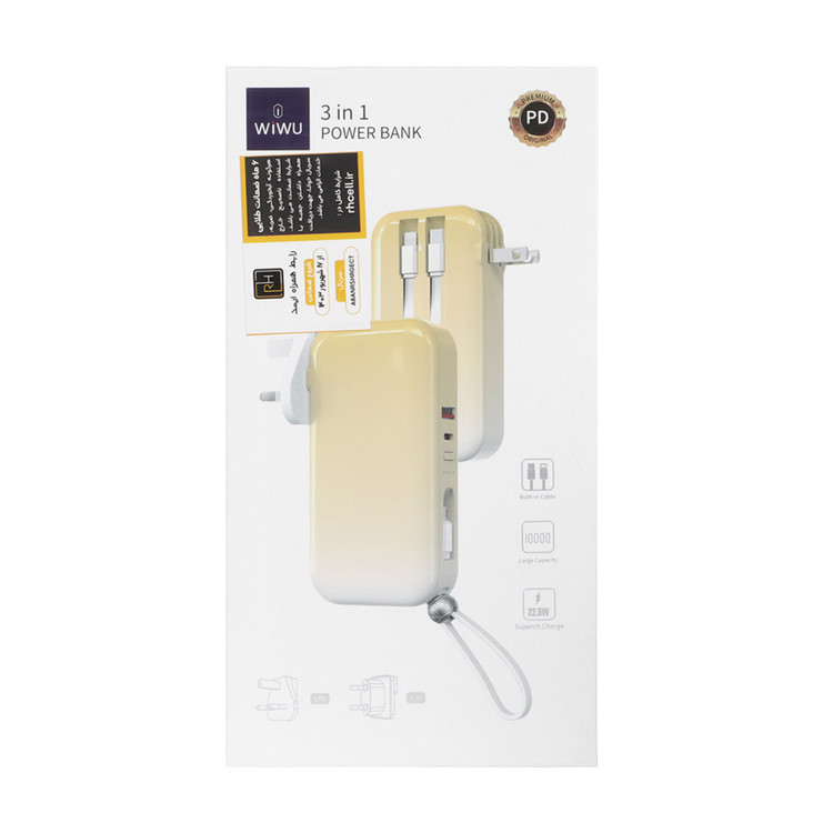 پاوربانک (PD و فست شارژ) Wiwu 22.5W 10000mAh مدل JC-23 - زرد
