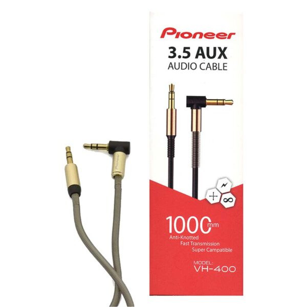 کابل AUX پایونیر در دو طرف خود فیش ۳.۵ میلی متری صدا دارد. کابل آ یو ایکس ۴۰۰ پایونیر با شیلد فلزی _ فنری بسیار مقاوم طراحی شده که علاوه بر مقاومت و استحکام زیبایی داشته باشد. به دلیل طراحی یکی از سری ها به شکل L ، از کشیده شده فیش و قطع شدن سیم آن جلوگیری می شود. از این کابل برای پخش صدای تلوزیون از سینما خانگی و یا اتصال صوتی بین گوشی تلفن همراه، تبلت یا لپ تاپ به رادیو پخش خودرو و یا دستگاه پخش خانگی استفاده می شود.