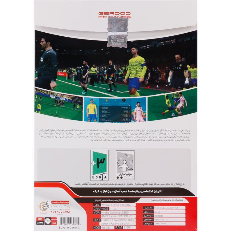 پس از معرفی و انتشار رسمی PES 2017 گردو بعنوان اولین شرکت ایرانی، اقدام به عرضه عمومی این بازی در کشور کرده است. Pro Evolution Soccer که به اختصار PES نامیده می شود، تولیدی موفق از کمپانی ژاپنی KONAMI است. این شرکت مشهور که در گذشته نسخه های اولیه فوتبال را برای کنسول های مختلف و مشهور بازی ارائه کرده بود چندی است که به رقیبی سنتی و قابل احترام برای FIFA تبدیل شده است. در حقیقت PES ارائه گر فوتبالی واقعی در نمایی جذاب است. گرافیک خیره کننده این بازی فراتر از نسخه های پیشین بوده و تمامی جزئیات همانند قطرات باران، آسیب دیدن چمن و خیس شدن صورت بازیکنان با دقت طراحی شده است. این بازی تجربه ای جدید، دوست داشتنی و هیجان انگیز بوده و هر کاربری را مجذوب زیبایی های واقعی خود خواهد کرد. لایسنس کامل لیگ های مطرح اروپا و لیگ عربستان و آمریکا 40 استادیوم جدید به همراه مسابقات یورو 2024 چهره و لباس جدید بازیکنان تیم های مطرح جهان ترکیب جدید تیم های مطرح اروپا به همراه گیم پلی و چمن جدید حداقل سیستم مورد نیاز: (Operation System : 7 – 8.1 – 10 (64Bit CPU : Core 2 Duo 1.8 GHz Hard Disk : 35 GB Ram : 3 GB Graphics : 1 GB VGA : Nvidia GeForce 9800 ATI Radeon x1600 در مورد محصول هر سوالی داشتید میتونید از ما بپرسید.