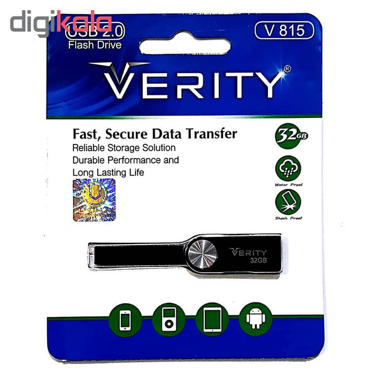 فلش وریتی VERITY V815 32GB با بدنه فلزی خود در برابر بسیاری از ضربه ها مقاوم است، به همین دلیل می تواند یک همراه خود در فضاهای باز و آزاد برای شما باشد. همچنین این فلش مموری دارای یک سری USB 2.0 است که اطلاعات را باسرعت مناسبی انتقال می دهد. این سری ها، رابط های معمول در بسیاری از فلش مموری ها با ظزفیت های گوناگون هستند که به شما سرعتی مطلوب را ارئه می دهد. فلش وریتی VERITY V815 32GB همچنین دارای یک بند متصل به انتهای بدنه خود است که می توانید با استفاده از این بند، از گم شدن آن جلوگیری کنید. لازم به ذکر است که این فلش مموری دارای ابعاد کوچک و بسیار قابل حملی است که علاوه بر اشغال جای بسیار کم در زمانی که درون پورت هم هست به دلیل اینکه بیشتر بدنه آن وارد پورت شده، احتمال خم شدن و یا شکستن آن به حداقل می رسد. این فلش مموری با گارانتی مادام العمر شرکت آسان سرویس(شرکت بازرگانی صبا) عرضه می شود، این گارانتی خیال شما را از لحاظ هرگونه خرابی یا مشکل احتمالی در آینده راحت خواهد کرد.