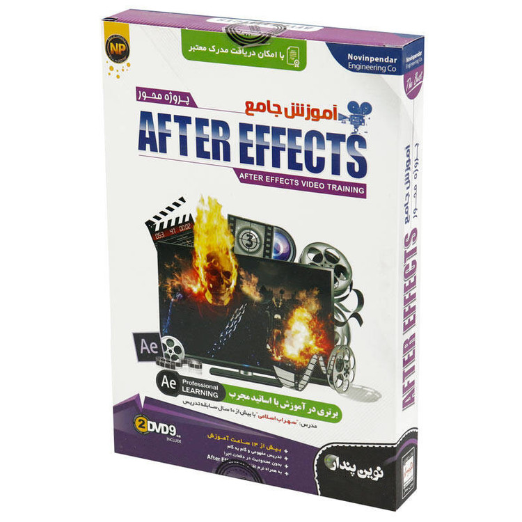 بیش از 13 ساعت آموزش، به همراه نرم افزار After Effects، تدریس مفهومی و گام به گام آموزش جامع تصویری After Effects در دو لوح DVD