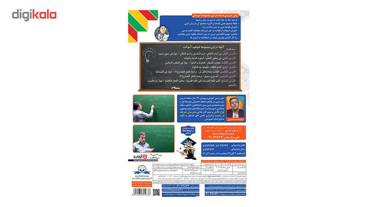 برای رسیدن به نتیجهی دلخواه در درس مشکل عربی، دانشآموزان پایهی یازدهم رشتههای علوم تجربی و ریاضی میتوانند از «آموزش تصویری عربی ۲» کمک بگیرند. این منبع کمکآموزشی همچون یک مربی در منزل، به دانشآموزان پایهی یازدهم در درس سختی مثل عربی کمک میکند. با بهرهگیری از نکات و آموزشهای تصویری این محصول، مفاهیم بهاصطلاح ملکهی ذهن دانشآموزان میشود. «لوح دانش» با همکاری موسسهی «دنیای نرمافزار سینا» محصول پیش رو را بهطور مفصل و در قالب دو حلقه دیویدی برای دانشآموزان پایهی یازدهم ارائه کرده است. از ویژگیهای روش ارائه شده در تدریس در این مجموعه میتوان به این موارد اشاره کرد: ترجمه خط به خط کتاب به صورت روان و شیوا، تلفظ صحیح معنی کلمات و کاربرد صحیح ان در زبان عربی، آموزش قواعد عربی به زبان ساده و رسا، آموزش استفاده از قواعد در حل تمرینات مختلف کتاب درسی، مشاوره مهم و انگیزشی در مورد چگونه عربی خواندن. سرفصلهای مطالب آموزشی این محصول عبارتاند از: اَلدَّرْسُ الَْاوَّلُ: مِنْ آیاتِ الَْخلاقِ+ اِسْمُ التَّفْضیلِ وَ اسْمُ الْمَکانِ + حِوارٌ فی سوقِ مَشهَد، اَلدَّرْسُ الثّانی: فی مَحْضَِ الْمُعَلِّمِ+ أُسْلوبُ الشَّطِ وَ أَدَواتُه، اَلدَّرْسُ الثّالِث: عَجائِبُ الَْشْجارِ+ الْمَعْرِفَةُ وَ النَّکِرَةُ + حِوارٌ فی الْمَلعَب الرّیاضی، اَلدَّرْسُ الرّابع: آدابُ الکْلَامِ+ الَجُْملةَُ بعَْدَ النکَّرَة، اَلدَّرْسُ الْخامِس: الَکِْذْبُ مِفْتاحٌ لکِلُِّ شٍَّ+ ترَجَمَةُ الفِْعْلِ المُْضارِع(1) + حِوارٌ فی الصَّیدَلیَّة، اَلدَّرْسُ السّادس: آنّه ماری شیمِل+ تَرجَمَةُ الْفِعْلِ الْمُضارِعِ (۲)، اَلدَّرْسُ السّابعُ: تَأثیرُ اللُّغَةِ الْفارِسیَّةِ عَلَی اللُّغَةِ الْعَرَبیَّةِ + مَعانی الَْفعالِ النّاقِصَةِ + حِوارٌ مَعَ الطَّبیب و اَلمْعْجَمُ . دانشآموزان رشتهی علوم تجربی و ریاضی، پایهی یازدهم میتوانند با تقویت خود در درک و فهم مطالب، بهراحتی نمرهی خود را در درس عربی بالا ببرند. انتشارات لوح دانش این منبع کمکآموزشی را با برخورداری از بهترین کیفیت و با قابلیت اجرا در رایانههای شخصی و دستگاههای پخش خانگی، برای دانشآموزان پایهی یازدهم ارائه کرده است.