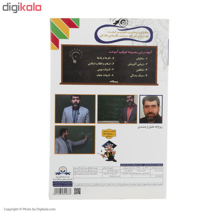 - حاوی دوحلقه دیویدی قابل پخش در دیویدی پلیرهای خانگی و رایانهها با سیستم عامل ویندوز - حاوی آموزشهای درس فارسی پایه هشتم - دوم متوسطه - ارائهی آموزشها براساس آخرین تغییرات و استانداردهای آموزش و پرورش