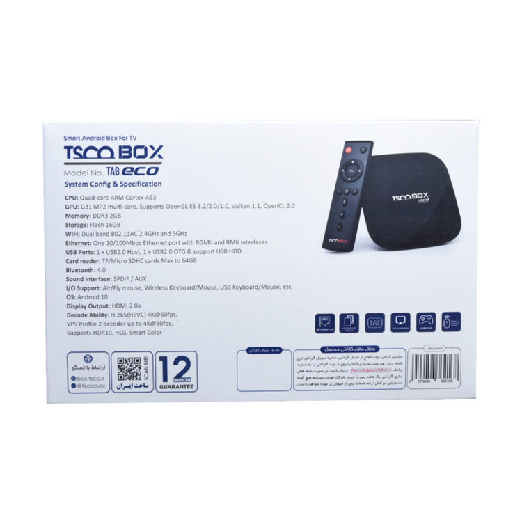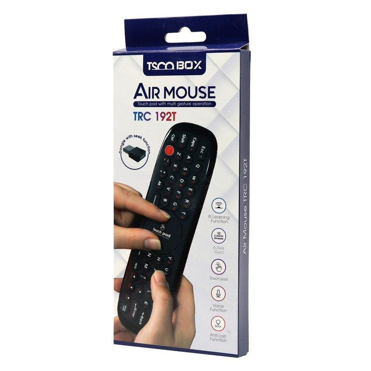 مهمترین مزیت اندروید باکس اکو برند تسکو را میتوان تبدیل تلویزیون معمولی به تلویزیون اندرویدی دانست و این مسئله در ایران، طرفداران زیادی پیدا کرده است. خرید اندروید باکس، میتواند روش مقرونبهصرفهای برای ارتقای تلویزیونهای ساده باشد؛ درحقیقت شما میتوانید برای بهرهمندی از سیستم عامل اندروید و امکان اجرای اپلیکیشنهای کاربردی، از بهترین گزینه یعنی تهیه تسکو باکس مدل TAB ECO برند تسکو استفاده کنید. در واقع تسکو باکس، فراهمسازی تمامی امکانات یک موبایل/تبلت اندرویدی را در صفحه نمایش بزرگ تلویزیون شما فراهم میسازد. این محصول با عرضه تمام قابلیتهای یک مینی کامپیوتر خانگی از قبیل انجام بازی، وب گردی در اینترنت، نمایش فیلم و دسترسی به سریالهای شبکههای اینترنتی VOD نظیر فیلیمو و نماوا و … ، بسترهای پخش آنلاین موسیقی، استفاده از اپلیکیشنهای شبکههای اجتماعی، برقراری تماس تلفنی در بستر اینترنت از طریق Skype و سرویسهای دیگر، حداکثر سهولت و کارایی را در اختیار عموم کاربران اعم از خانگی و اداری قرار خواهد داد. واضح است کاربران بر حسب نیاز میتوانند با نصب اپلیکیشنهای مورد نیاز و فعالسازی مجوزهای استفاده از اندروید مارکتهای موجود همچون Google Play Store، کافه بازار و… به حجم کثیری از برنامههای کاربردی روی تسکوباکس خود دست پیدا کنند. ریموت هوشمند مدل TRC 192T یک محصول کاربردی ساخت شرکت تسکو می باشد که از طریق دانگل USB با برد حدود 10 متر به صورت بی سیم و بدون نویز به انواع متنوعی از گجت های هوشمند مانند کنسول بازی، کامپیوتر، تلویزیون هوشمند و … متصل می گردد و از سیستم عامل های ویندوز، لینوکس، اندروید و مک نیز پشتیبانی می نماید. TRC 192Tدر یک طرف دارای دکمه های مدیریت و کنترل عملکرد سیستم شامل دکمه روشن/خاموش، دکمه کم و زیاد کردن میزان صدا و … می باشد. این ریموت هوشمند در طرف دیگر به یک موس و کیبورد تبدیل می شود و مجهز به کیبوردی با 59 عدد کلید با حروف فارسی و یک تاچ پد با قابلیت اسکرول است. این محصول مجهز به یک باتری داخلی از نوع لیتیومی با ظرفیت 500 میلی آمپر ساعت قابل شارژ است. تسکو در ریموت کنترل بی سیم خود از کلیداختصاصی میکروفون بهره برده که قادر است دستیار صوتی را فراخوانی کند. به کمک این دستیار ویژگی هایی مانند جست و جو در سطح وب بسیار ساده تر خواهد شد.
